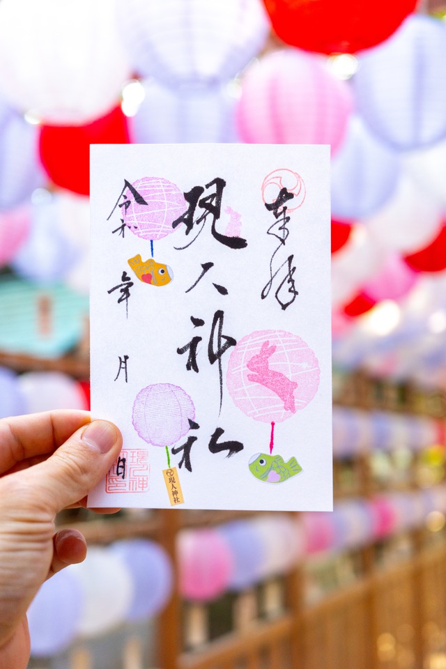 恋ぼんぼりをイメージした御朱印帳です。※御朱印の日付はご指定いただけません。 ※こちらには通常の現人神社の御朱印が墨書されています。 お正月期間中は発送が通常時より遅れます。ご了承くださいますよう、お願い致します。