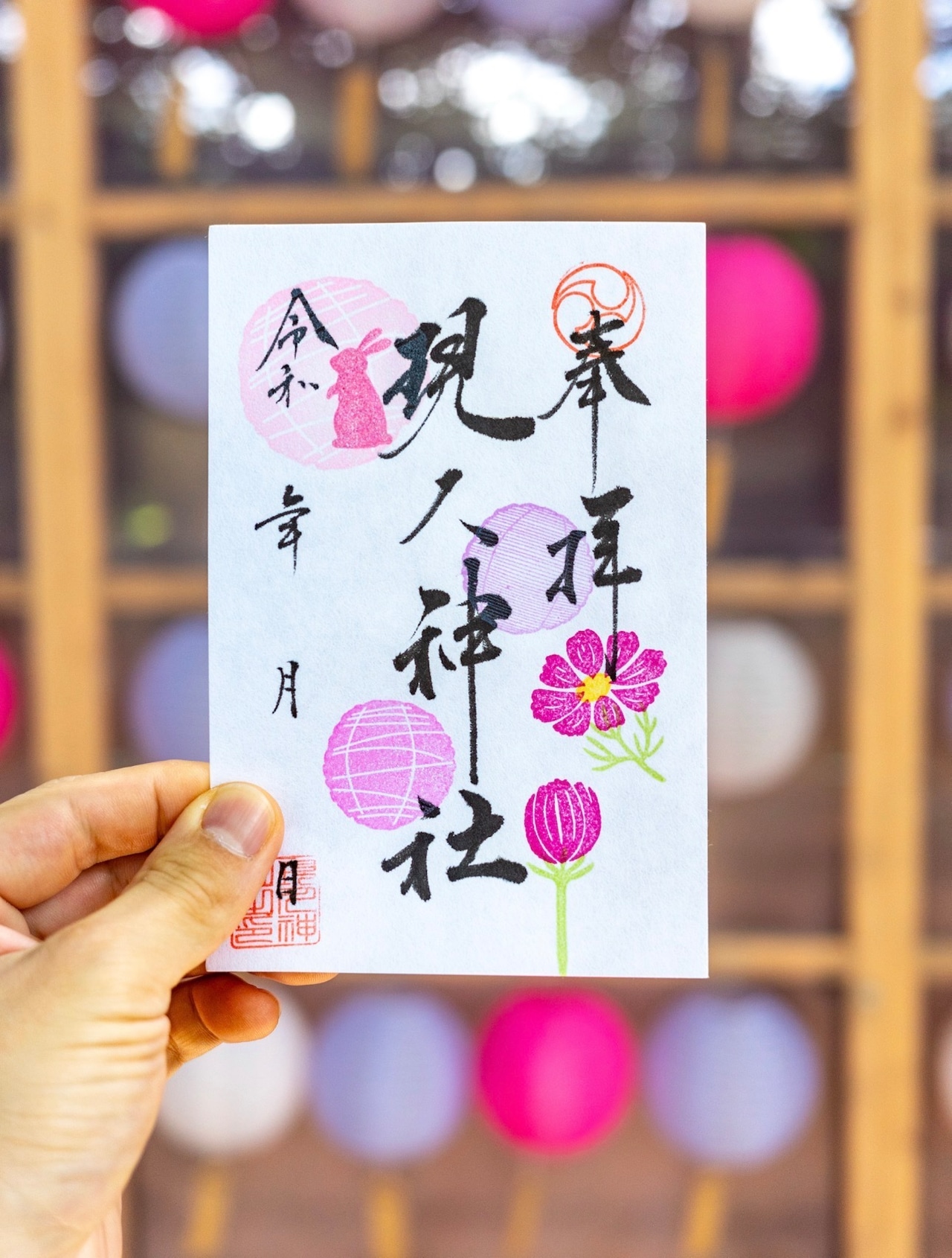10月限定のデザインは、秋桜の美しさとともに、温もりを感じる色合いが特徴です。この時期の特別な思い出を心に刻むために、この御朱印をお持ちいただければ幸いです。
